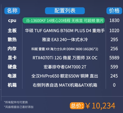 行情变化,某些配件涨价或者缺货。3060ti g6x基本无货,4060ti上位,性价比并不高,只能说与早期3060ti g6x持平。6750xt小涨,但对游戏玩家而言,性价比依旧比a卡高太多了。