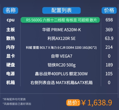 500元到2k,5600g核显机为全新,其余有大量二手,二手有风险,购买需谨慎。