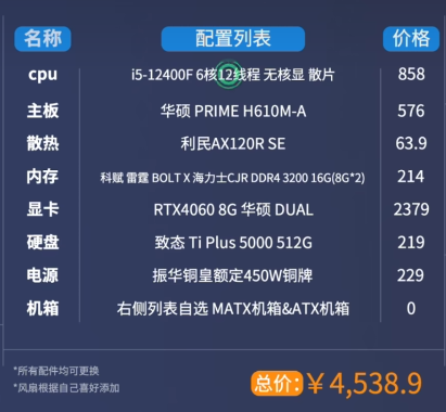 部分配置是之前给别人写的,价格也许有变化,搭配也因为不同人要求许奇奇怪怪,请谅解。