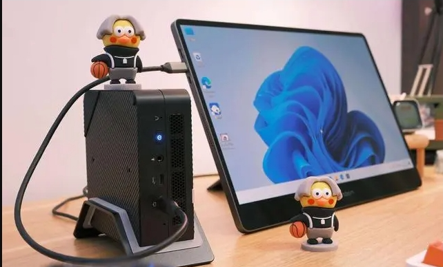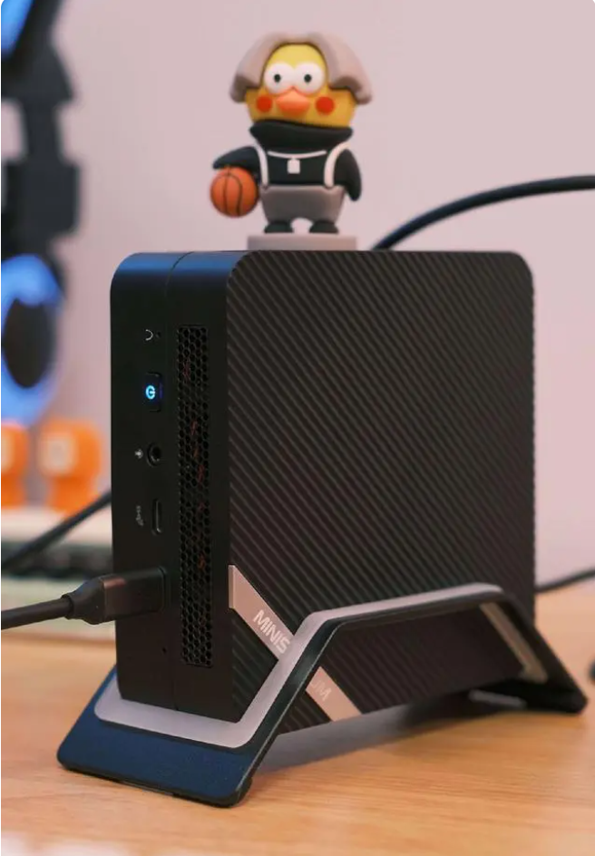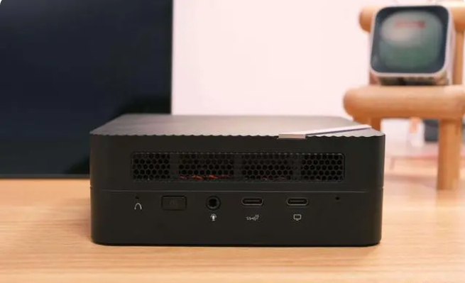 接口方面,铭凡UM560XT前置音频麦克风口、一个Type-C数据传输,一个Type-C带视频传输。