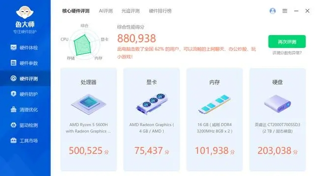 对于办公来说,这配置其实已经足够了,鲁大师跑分80多万。