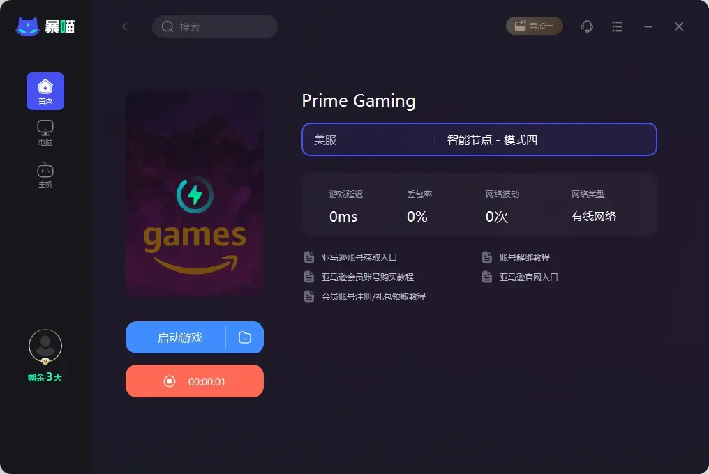 此次送出《幽灵线东京》是epic版本的,但不是到epic领取,需要借助亚马逊进行。使用亚马逊的玩家应该都知道,亚马逊需要使用加速工具才能顺利进入,使用暴喵加速亚马逊,顺利进入。