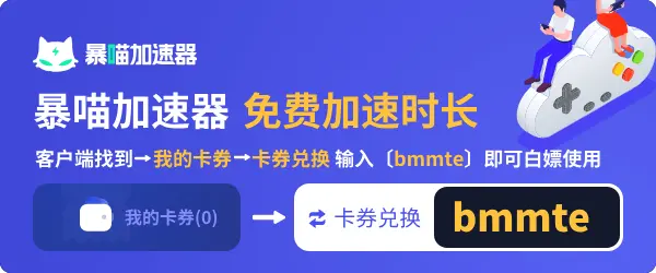 没有加速时长也不要紧,去暴喵主页面-我的卡包–卡卷兑换,输入【bmmte】领取3天会员时长,免费加速。