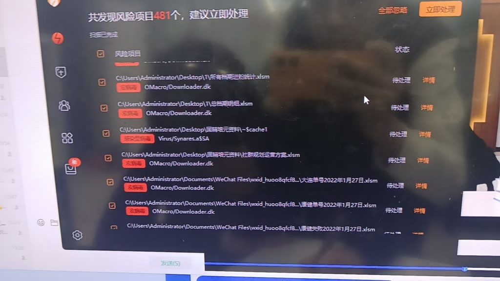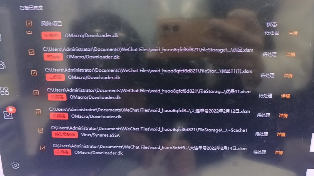 今天讲的是excel表格的宏病毒,为啥说呢因为最近一个朋友问我电脑老是卡顿运行软件慢,说是最近刚换的电脑,还有就是现在创建的表格格式从xlsx变成了xlsm,我就帮他看了一下硬件都没问题,重点,他的电脑虽然软件不多但是关键的杀毒软件没有安装,我就帮她装了个火绒先帮她清理一下垃圾,然后我就病毒查杀了一下,一查直接养蛊看图。