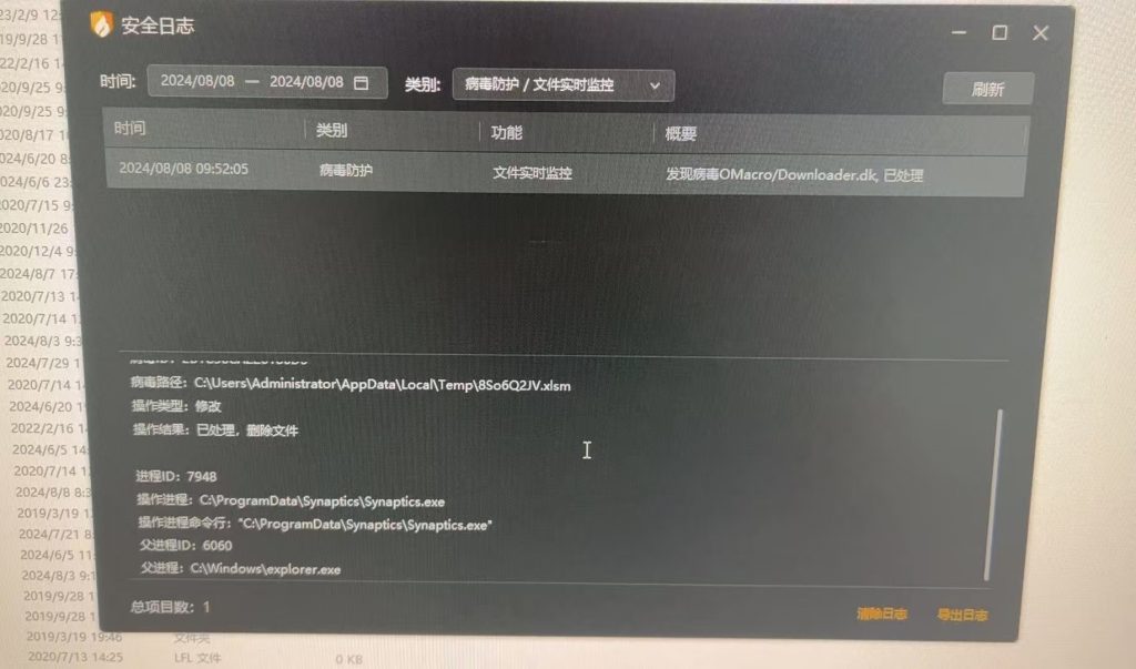 然后把里边synaptics.exe程序删除掉。但是这个办法不是针对全部的宏病毒,