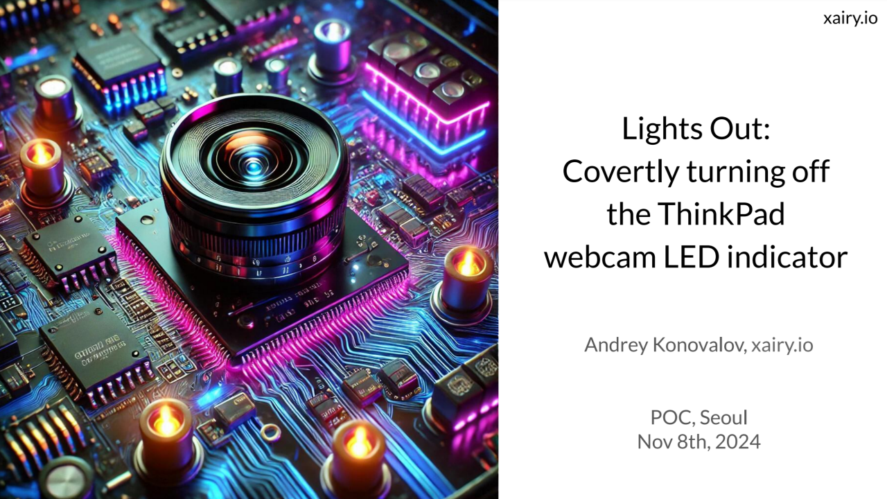 完整报告(仅英文):https://powerofcommunity.net/poc2024/Andrey%20Konovalov,%20Lights%20Out%20-%20Covertly%20turning%20off%20the%20ThinkPad%20webcam%20LED%20indicator.pdf