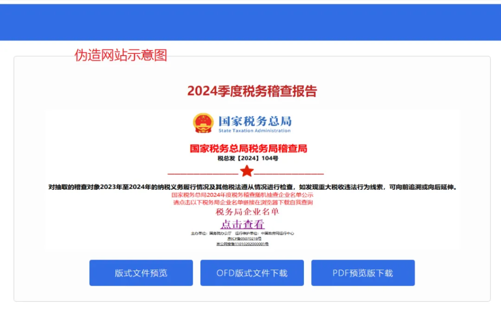 该木马的攻击方式包括通过微信、QQ、Telegram等软件为主要传播途径;通过SEO广告伪造虚假网站进行传播;通过邮件进行鱼叉式钓鱼攻击,引导受害者点击页面,随后页面自动跳转下载传播。攻击团伙伪造了“2024年度本市违规涉税企业处罚名单”等财务相关的网站页面吸引受害人点击,一旦点击后会自动下载木马病毒。电脑被植入木马后,相关信息会被获取,攻击团伙会利用相关信息,通过伪装成领导、老板等方式实施精准诈骗。